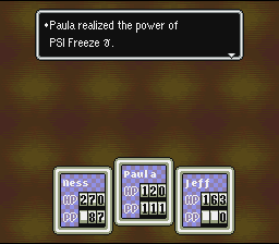 It's suggested that Paula's level be at 31 before you go into the gold mine. At level 31 she will learn PSI Freeze γ, which will be extremely useful against the bosses there.