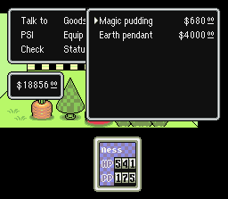 | At the Magicant shop you'll be able to buy Earth Pendants and Magic Pudding. The Earth Pendant protects from Fire, Freeze, and Flash, but only partially, which is why you hopefully brought a Sea pendant along. Stock up on Magic Pudding if you don't have any PP healing items. You'll need them for the final bout. |