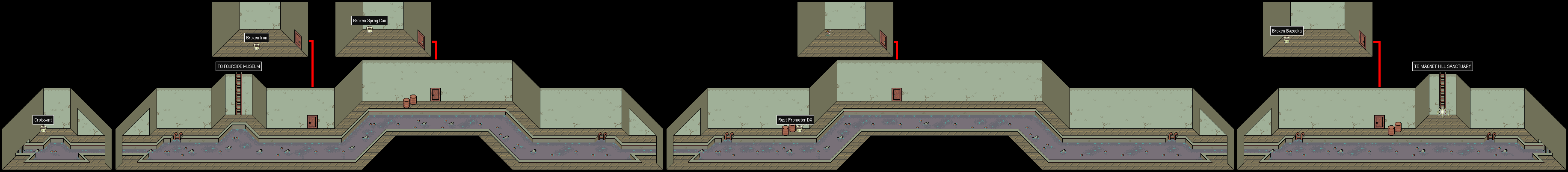 | On your way back out of the sewers, collect all the items in the trash cans. In particular, make sure you nab the Broken bazooka, which, once Jeff fixes it (he needs IQ 45 to fix it), will be one of your most valuable items. It's located just to the left of where you fought Plague Rat of Doom. |