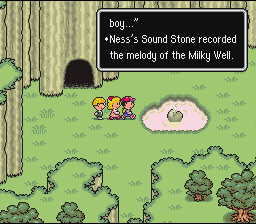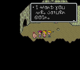 Before you do anything else, go down the now-fixed ladder and head back out toward the hotel. Make sure you talk to the Mr. Saturn near the cave entrance! He'll fork over the special things he promised you before, including a valuable Mr. Saturn Coin. Make sure to equip it.