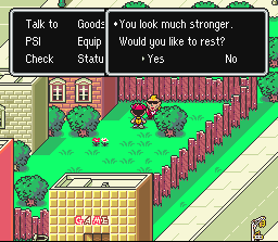 After you defeat Frank, a nice, fast way to rest yourself up (just like a hotel or home) is to talk to him behind the arcade. He'll offer to let you rest and you'll be revitalized! Too bad everyone isn't a good loser like he is.