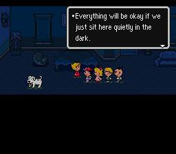 When you arrive in Onett once again, all is not happy as it once was. The town is shrouded in perpetual darkness, and vile creatures roam the woods. Your stay here is brief but important, so head up the path toward the meteorite. It's recommended that you stop off in Ness' house on the way there for a quick HP/PP recharge from Mom and a savegame from Dad.