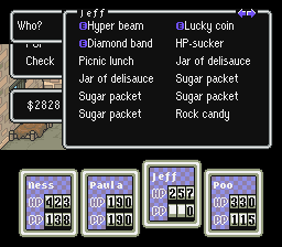 But wait, there's a nifty trick you can use! Give the Rock Candy and some condiments to one person, then move the Rock Candy so it's the last item in that person's inventory. Use the Rock Candy in battle and only the condiment will get used up! The best condiments to use are Sugar Packets or Jars of Delisauce. This trick can make for some insane stat increases.