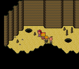 First off, when you re-enter the cave, drop down the only hole that you find. You'll land right next to a present that contains -- ta da! -- the Bracer of Kings! This is one of the four pieces of equipment specifically made for Poo. It will increase Luck and protect against Sleep attacks. If nothing else, GET THIS ITEM.