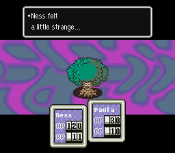 If you're afflicted by this ailment, you'll attack and use your PSI powers on your party at random intervals. It's better to just defend with your characters who feel strange except if you feel lucky. Healed By: Healed at end of battle; Healing β / γ / Ω; Cup of Lifenoodles, Horn of Life, Refreshing Herb, Secret Herb |