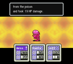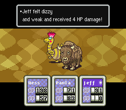 This is a status ailment that prevents you for using PSI, you can prevent this with the Brain Stone. It's obviously harmless if Jeff loses his concentration, as he already can't use PSI. Healed By: Healed at end of battle; Healed after a few rounds in battle |