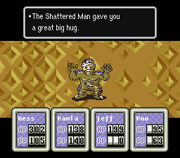 Be careful, there are two enemies lurking in this room! Make sure you're healed up before coming in. They're not especially hard if you use PSI Freeze and your strongest attacks. You may win Mummy Wraps after defeating each one.