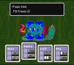 In this case, use the same strategy for beating Thunder & Storm. Paralysis is effective, so try that with Ness, and bombard the Kraken with your strongest PSI Freeze from both Paula and Poo. While you're doing this, Jeff should be using any Big Bottle Rockets or Bombs he has, along with physical attacks. Take the time to replenish HP occasionally (both Ness and Poo are good for this with Lifeup), and hopefully you can take him out in no time.