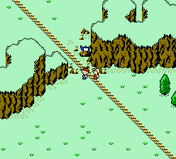 | Once you're all healed up and ready to go, grab at least $72 dollars from the ATM (you'll need it soon) and head north of Merrysville again to the crag that plugged the railroad. Your rocket blasted the rocks on the tracks, so now the railroad can go through! Keep walking north to find Union Station. |