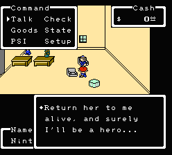 ...so why not stop at the huge store in town? If you stick around the outskirts of Podunk and beat up a lot of crows, dogs, and people, you can amass enough cash to buy the Wooden Bat, raising your offense by quite a lot. Fighting until you're around level 6 or so should make the foes around Podunk much easier and will cover the bat bill.