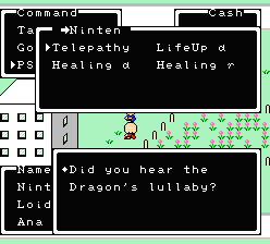 There's a woman in town who is quite reserved. However, if you use Telepathy, you'll find her mind swimming with thoughts of your quest. The dragon, of course, is the sleeping beast in Magicant's Crystal Cavern.