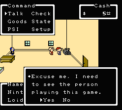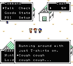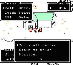 | Inside the northwestern house in town is a Healer. Also in his house is a phone. If you pick it up, Ninten's Dad will ask for your name. Put it in, as it triggers something much later in the game. |   |