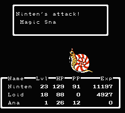 |  Now's the time to level Ana up. She may be weak offensively, but she gains numerous offensive PSI and superb PP at level ups. For progression, she should be at the bare minimum level 8, but it's safest to go to 12-16 if you have the patience. |   |