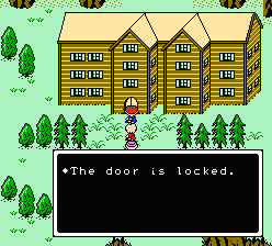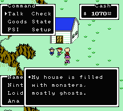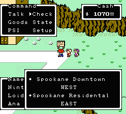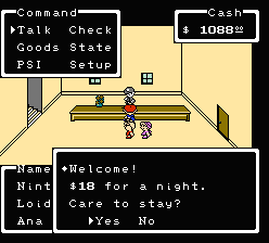 | When you awaken, however, the shifty hotel worker reveals itself to be a starman! Fight him off and watch out for his PK Beam attacks. The hotel seems to be entirely dead now, unfortunately, so continue on your way to residential Spookane. |