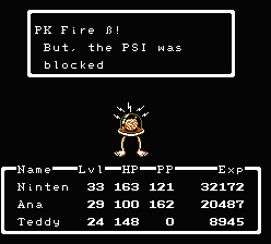 If a character gets hit with PSI Block, they cannot use PSI powers for the rest of the battle. Healed By: Healed at end of battle |