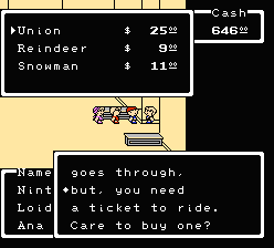 | From the station, go down to Merrysville, heal up and withdraw at least $60 (though $150 or so is better). You'll need the cash on your person soon. While you're here, make a side-trip west back to your house. Leave enough items with Minnie so you have 10 slots open in your inventory. |