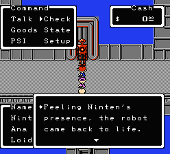 At the very end of the lab lies a ladder leading to the uppermost parts of the building. Waiting there is a large red robot. By Checking it, you'll activate the start program set inside, and the robot reveals itself to be EVE, a machine created by your Great Grandfather George meant to protect you.