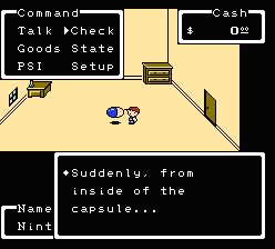 | At the very top, you'll come upon a strange capsule-like thing. If you check it out, you'll find yourself in a battle against a Starman Jr.! The battle can be easy or tough: It hits rather hard and has various PK Beam forms. However, if you're lucky, it'll try to use PK Beam r, and your Franklin Badge will reflect it back. While the spaceman has immunity to the instant-K.O. effects, it'll give you an extra turn to smash him up. |