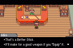 Check out Thomas' Bazaar before you leave town. If you're lucky, you might find the Better Stick weapon, which is the strongest weapon in this chapter. It rarely appears in the bazaar, though, so you'll need luck. Be sure to get the other items, too.