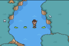 At the river, talk to the frog on the right. Other frogs will appear in the river and act as stepping stones. Use them to get across. Use the hot spring to heal if necessary, then go into the shell-like building.