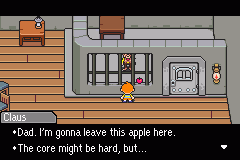 Claus will show up and tell Flint that the funeral ended. He'll then give you an apple that he says to eat right away. After he leaves, try eating the apple. You'll find a nail file inside! Use it on the door lock to break free. Freedom at last!