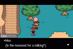 On the far side of the river, you'll find a cow. Talk to it to get some free Fresh Milk. It's very useful to have, but it has one downside: after a while, it goes bad and turns into Rotten Milk. So stock up on it only if you're going to need it right away.