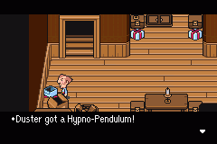 When Wess is done explaining Duster's task, go downstairs and open the gift boxes. They all contain items that let Duster perform his various special moves in battle. Once you're ready, head outside.