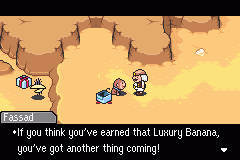 You'll soon come across a present box with a Luxury Banana in it. Fassad quickly grabs it for himself, though. You'll also come across three more present boxes containing Beef Jerky, Bug Spray, and another Running Bomb. These you can keep.