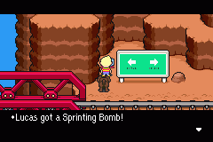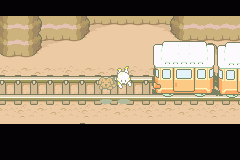 Finally you will find yourself at the train station! Nearby are some present boxes. The one by the trees guarded by the Bird Sticks contains a Bread Roll. Bird Sticks have a 5% chance of dropping an Aluminum Rod, a very handy weapon for Lucas. And the one at the end of the tracks has a Flea Powder inside. You can fight the Cattlesnakes if you like. They are pretty tough, so be warned! When you're ready, head north.