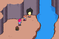 | Duster recalls where he stashed the Egg of Light. After a flashback enter the nearby cave. Speak to the mole inside and upgrade your equipment then save with the frog. Leave the small cave. |
