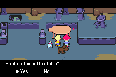 | After your landing you can go catch up with the residents in Tazmily Village if you like. But it is not necessary. Check the bouncing jar nearby to open up an underground passage. Once down there head east and you will immediately find another bounding jar. Check it and then ride the coffee table all the way east, and then north once the path forces you to turn. Welcome back to the highway. |
