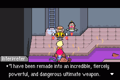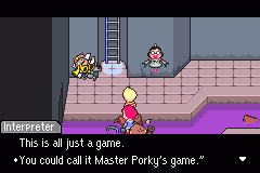 You have found Leder, the very tall man that once used to rang the Cross Road bell. Speak to him to learn the truth about everything. About the dragon, about the people of Tazmily Village, about your friends, about Porky and about the world. After the very long and eye opening story, Leder gives you the Stinkbug’s Memory incase you forget what he told you. Now head out of here and go straight for the Empire Porky Building.