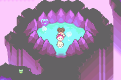 Thrown from the elevator, you find yourself in a large cavern deep below New Pork City. Flint insists on going ahead first. Follow his lead and go south down the many stairs and ladders. Along the way you come across a familiar doorknob. At the bottom is a Save Frog, and a present with hot spring inside. Go through the cave.